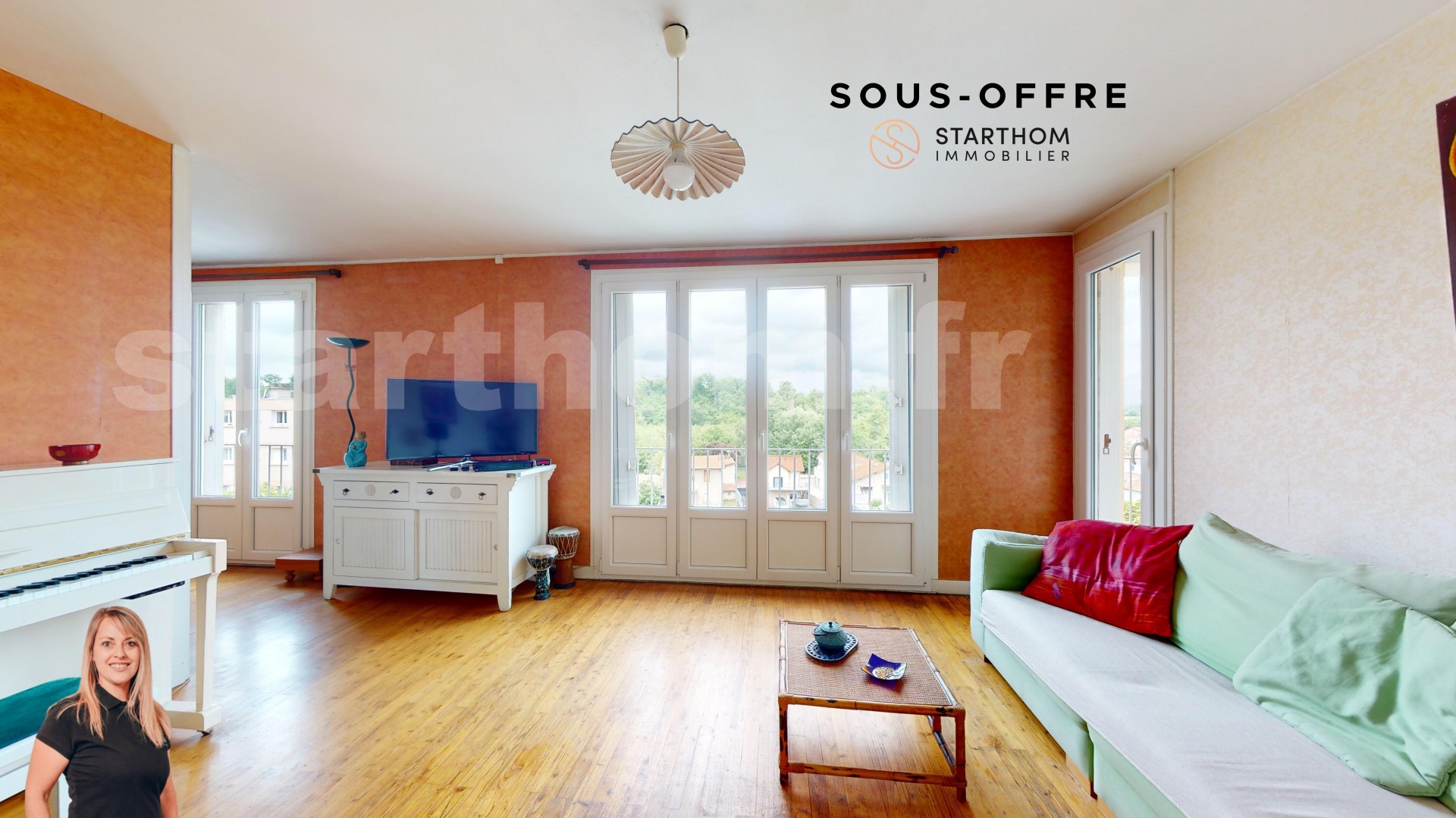 L?entrée dessert sur la droite une cuisine avec loggia et sur la gauche un double séjour de 30.50m² avec balcon de 2.81m² et vue dégagée.