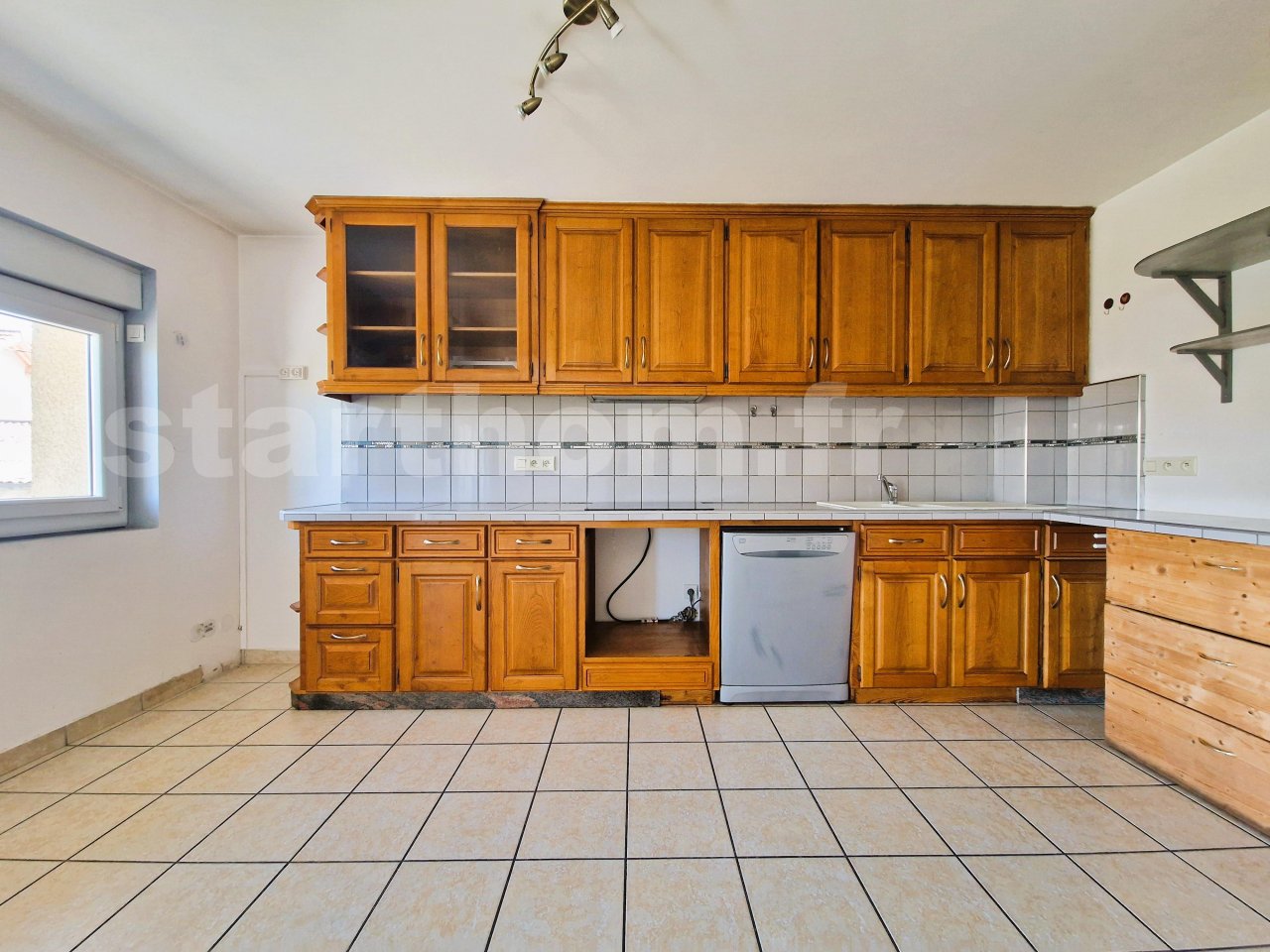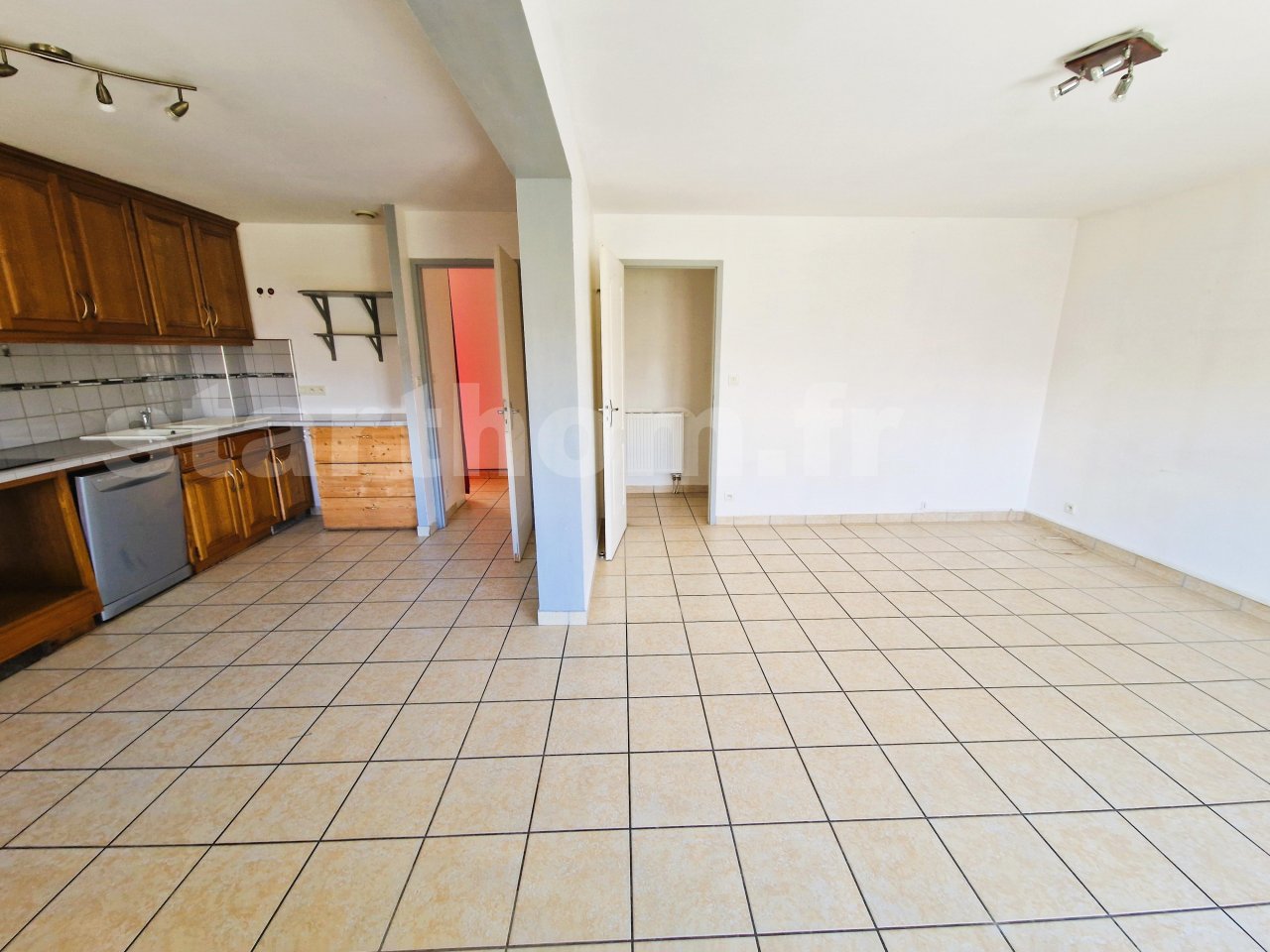 Il est composé d’une large entrée, d’une pièce de vie d’environ 30m2 avec cuisine équipée et d’un WC