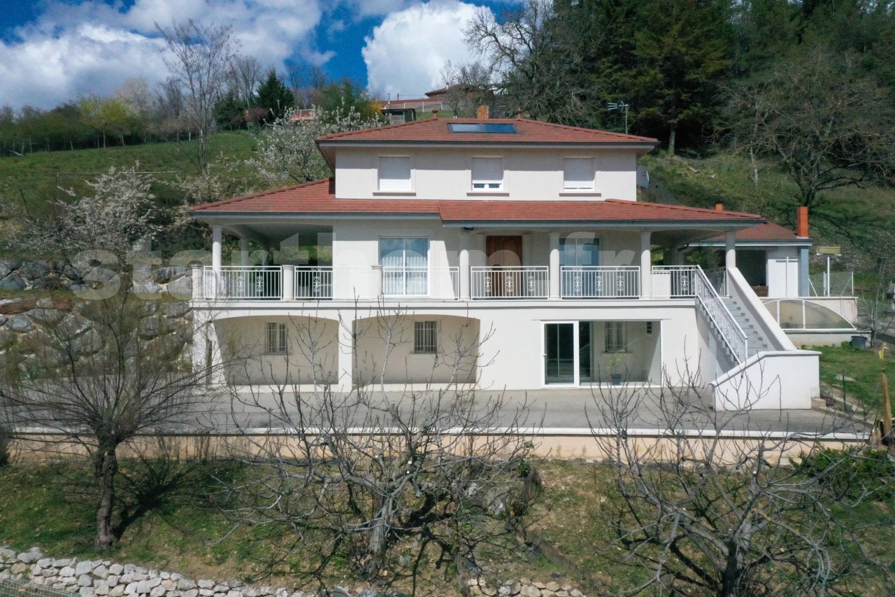 Magnifique maison de maçon de 210m² sur son terrain de 2000m².Vous pourrez profiter d’un premier niveau comprenant une belle entrée ,une cuisine entièrement équipée, un grand salon, salle à manger accédant à l’immense terrasse coté ouest, une chambre ou salon et un WC indépendant. Le deuxième niveau vous offre 4 grandes chambres, une salle de bains et un autre WC. Pour votre famille, les amis, ou voir même pour un rendement locatif. Le RDC est aménagé avec une cuisine entièrement équipée,une salle d’eau avec WC, une chaufferie, un cellier ,une salle de sport, une pièce pouvant être une 6em chambre et un garage pour deux véhicules, avec porte motorisée. L’extérieur vous offre un bel appentis avec charpente traditionnelle comprenant une cuisine d’été avec barbecue, four à pain et pizza. Vous profiterez aussi d’un bel espace jardin piscinable avec une source. Vous aimerez la qualité de cette maison, ses volumes et toutes les possibilités des diverses projets qu’elle vous offre. N’attendez pas..A pieds à l’ensemble des commodités..