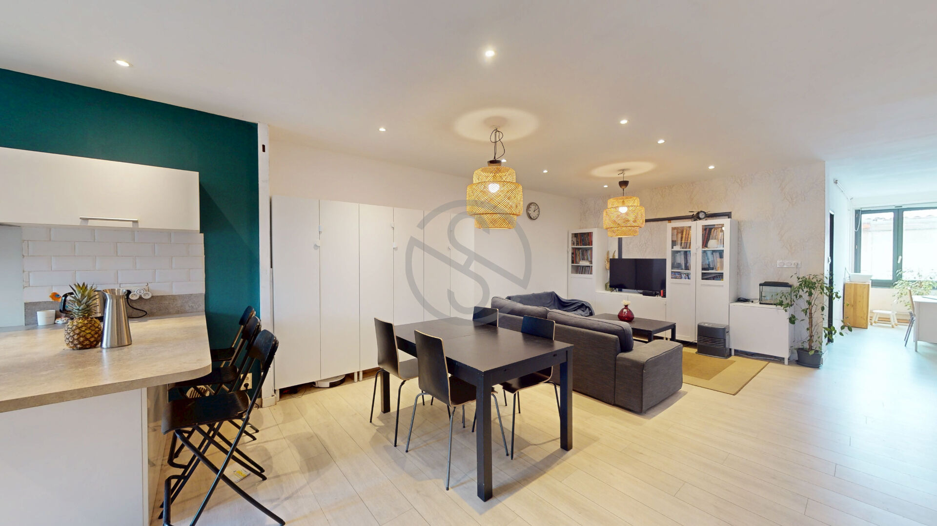 -Une pièce de vie spacieuse et lumineuse avec un espace salon chaleureux et une cuisine ouverte, équipée et moderne, idéale pour partager des moments conviviaux.