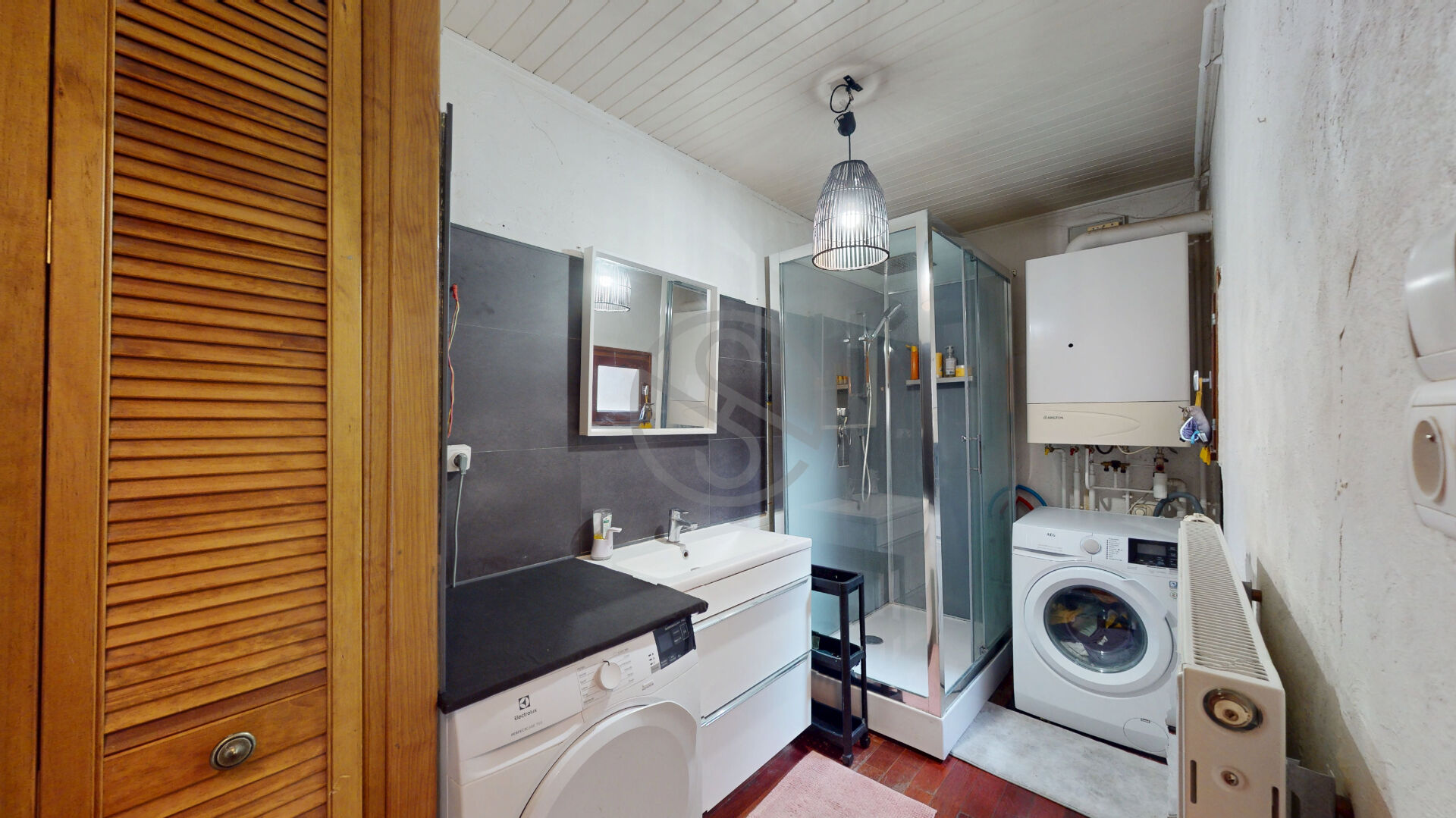 -Une salle d’eau avec douche et espace buanderie.