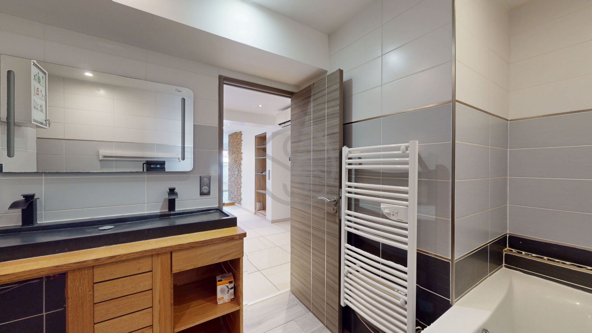 Le coin nuit dispose de deux belles chambres de 11.66m² avec coin dressing et 11.80m². Un bureau de 5.90m² vient compléter ce bien ainsi qu’une spacieuse salle de bains de 8m² avec douche à l’italienne, baignoire et meuble double vasque.