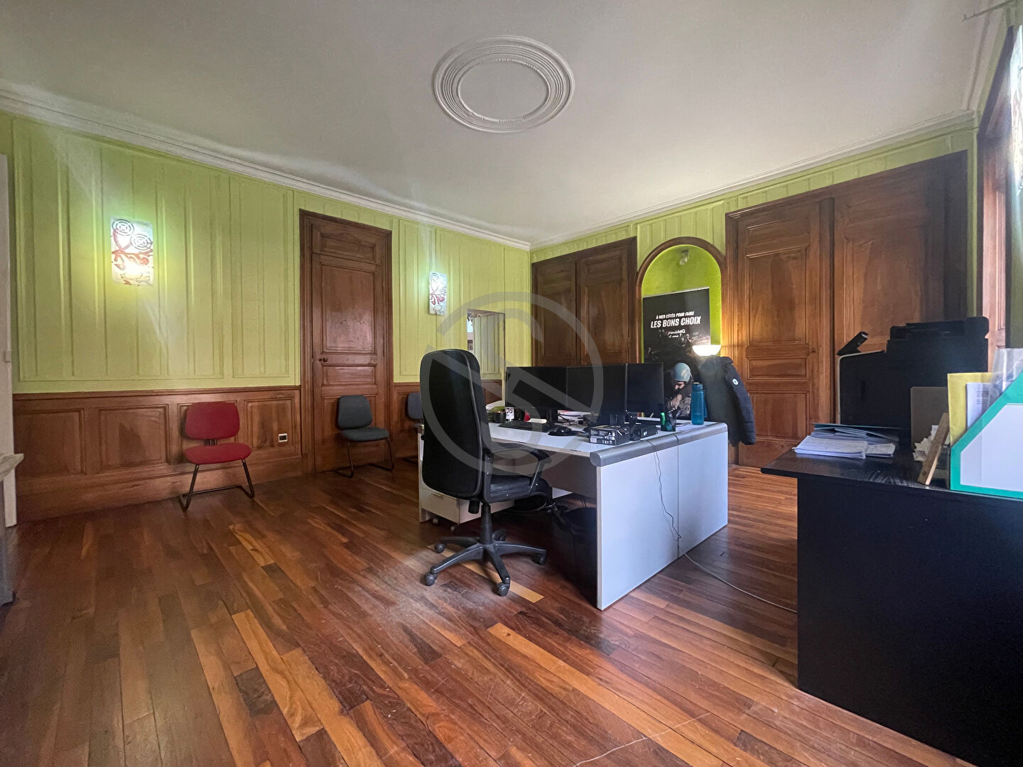 Les bureaux sont répartis entre le rez-de-chaussée et le 1er étage, offrant une excellente accessibilité, renforcée par la présence d’un monte-charge, idéal pour les activités nécessitant manutention ou archivage.