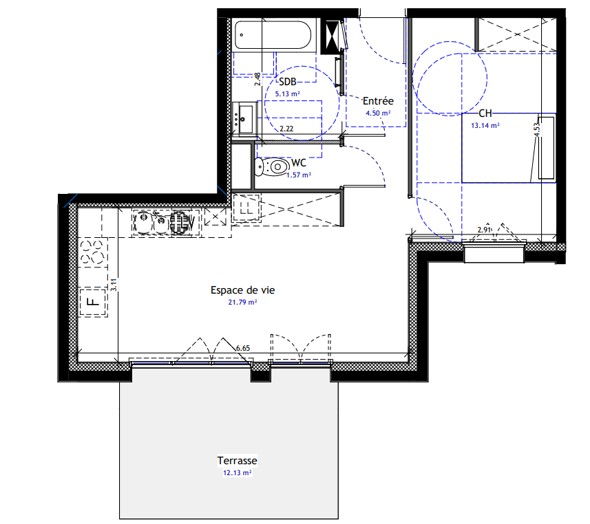 Chaque appartement est composé d’une pièce de vie ouverte, d’une ou plusieurs chambres, d’une salle de bains, d’un balcon.
