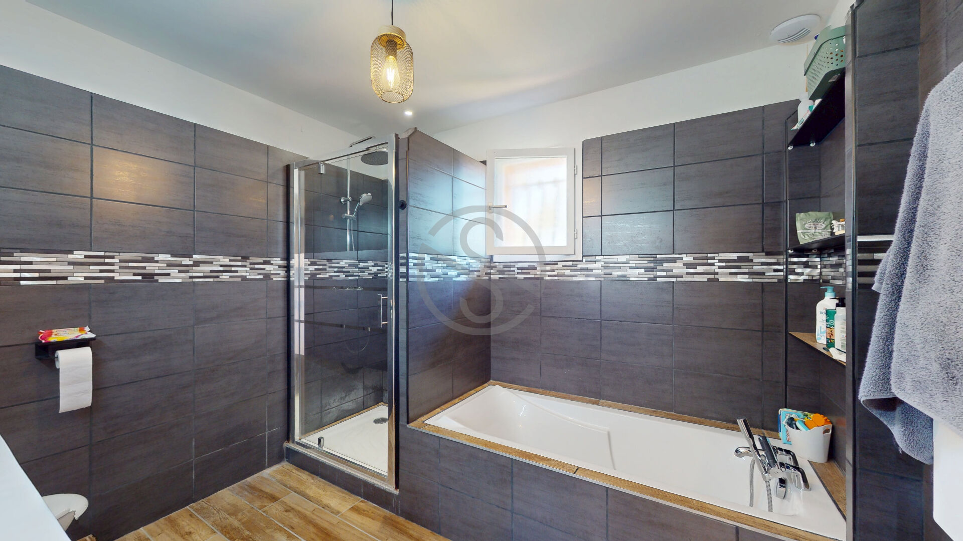 Villa coup de coeur à Saint Hilaire de La Côte (38260) idéalement localisée dans un secteur pavillonnaire et privilégié, venez découvrir cette magnifique villa de 1998 entièrement rénovée dans un style moderne et contemporain. La maison de 139m2 habitable sur deux niveaux vous propose : un spacieux hall d’entrée avec dressing desservant : un wc indépendant, une chambre parentale tout confort avec salle d’eau, un grand buanderie toute équipée, la lumineuse pièce de vie et sa cuisine de haute qualité toute équipée ouverte sur le coin salon et salle à manger. A l’étage, vous serez conquis par trois chambres supplémentaires ainsi qu’une salle de bains avec douche, baignoire et WC. La propriété vous offre également une belle terrasse côté SUD avec plusieurs accès directs à l’espace jour. Un double CARPORT vient équipée la maison, deux grands abris de jardin ainsi qu’un beau chalet aménagé pour télétravailler ou encore accueillir une annexe à l’habitation principale. Vous serez charmez par la qualité des prestations tout comme par le cadre de vie.