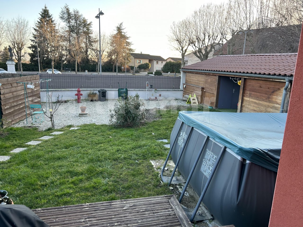 Vous bénéficierez d?un terrain entièrement clos de plus de 280 m2 avec piscine, terrasse bois, un abri de jardin en bois vous permettant d’avoir un espace de stockage supplémentaire (eau, électricité).