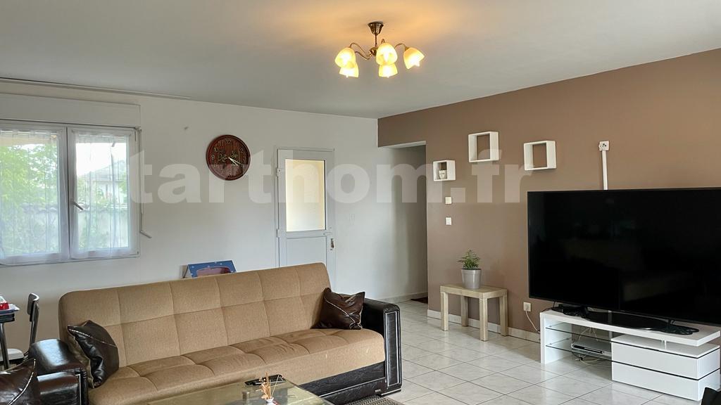 Elle comprend une cuisine de 16m²,une pièce de vie de 26,3m²,trois chambres, une salle de bains et un WC indépendant. Elle dispose aussi d’un garage de 29m²avec fenêtre.