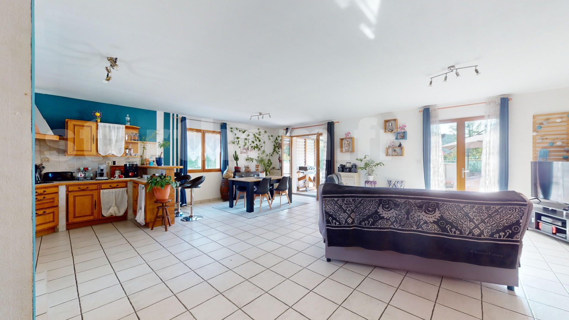 – Le rez-de-chaussée pour la partie jour avec une pièce de vie et sa cuisine équipée d’une belle superficie de 47m² avec accès terrasse couverte, ainsi qu’un WC indépendant