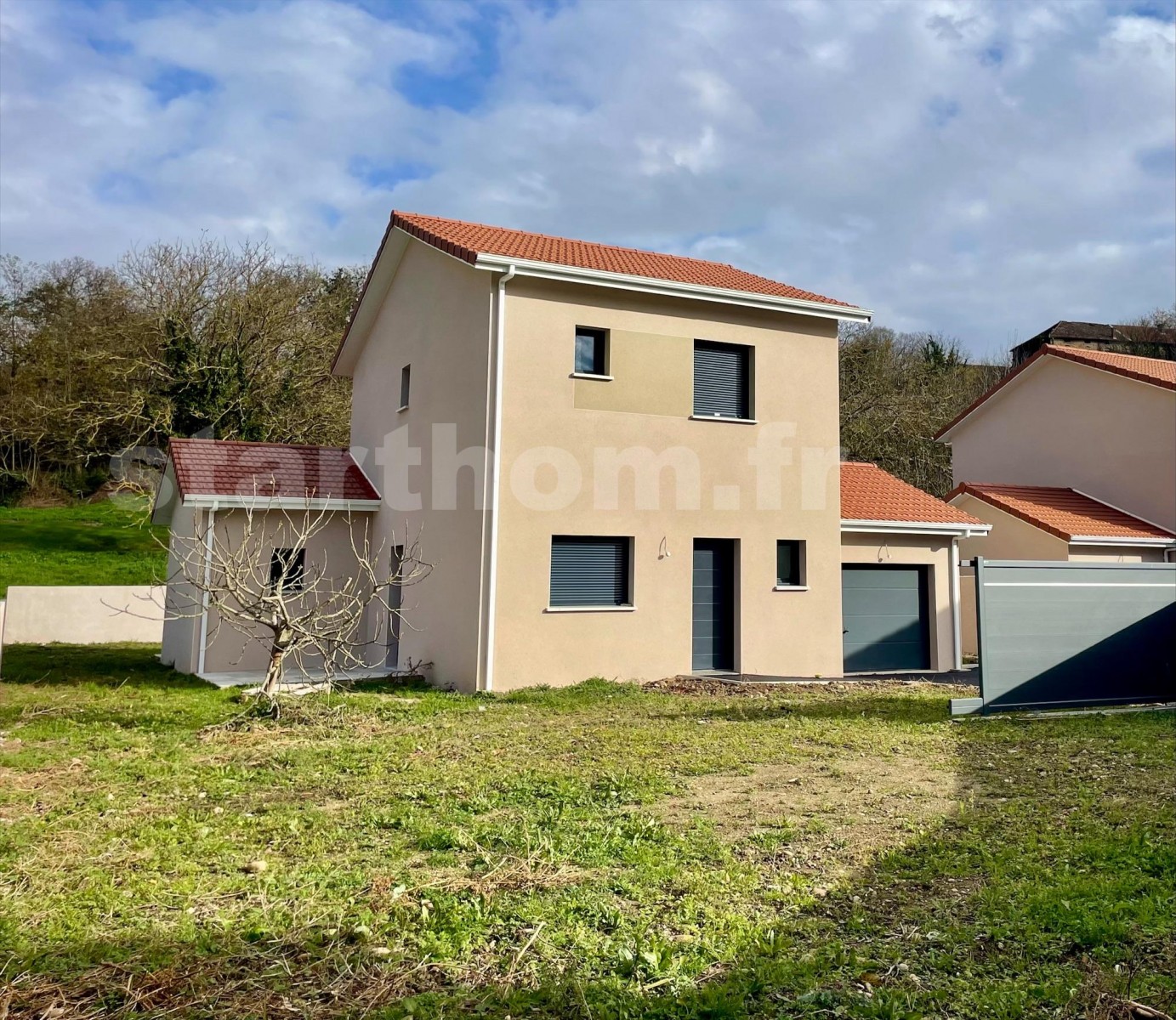 Situées à 8 minutes de Beaurepaire; sur Viriville au c?ur du village, toutes commodités à pied. Dans un cadre champêtre au calme 3 villas comprenant chacune au RDC un séjour / cuisine, une suite parentale avec salle d’eau, un toilette indépendant. A l’étage, 3 chambres, une salle de bains, toilette. Chauffage au sol au RDC et au 1 étage par pompe à chaleur air eau. Deux terrasses extérieures carrelées, portail électrique et murs de clôture + Garage.