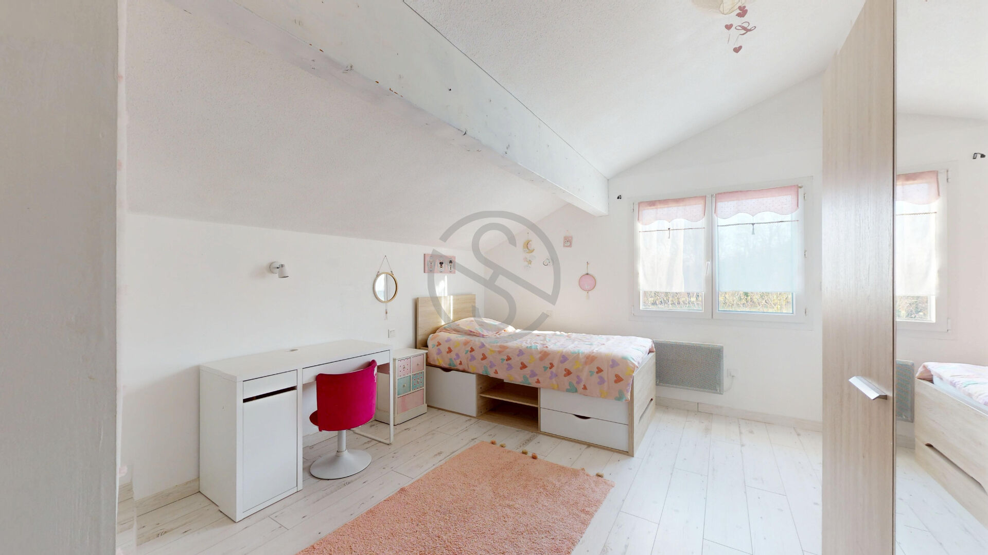 La partie nuit se compose de 7 chambres avec la possibilité d’en créer une huitième dont deux chambres situées en rez de chaussée répondant parfaitement aux besoins d’une grande famille ou à un projet mixte résidence principale activité professionnelle accueil ou hébergement.